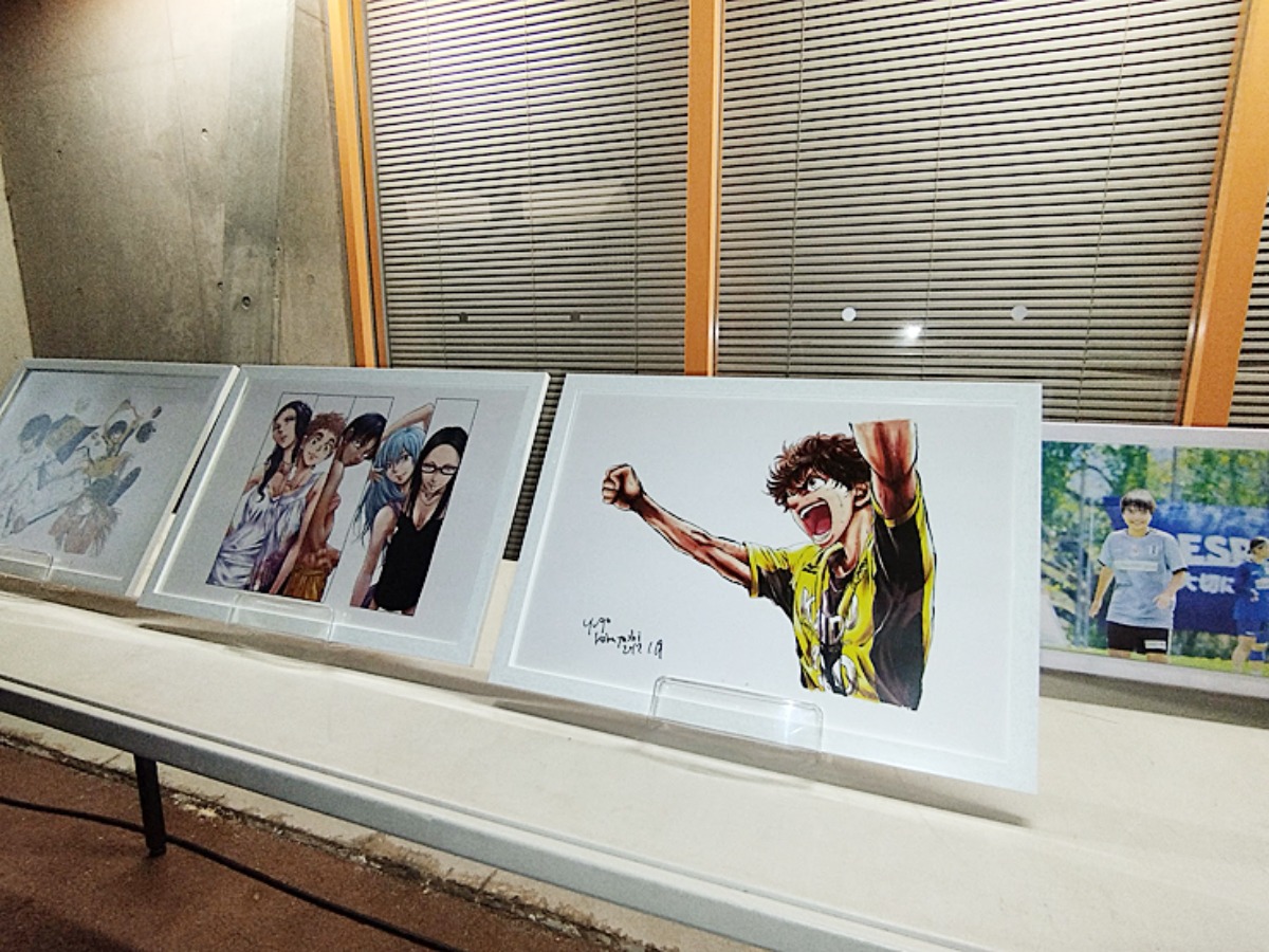 「アオアシ」の貴重な原画やアオアシラッピングカーに、完結を迎えた作品への感謝の寄せ書きなど、見どころに溢れていました!