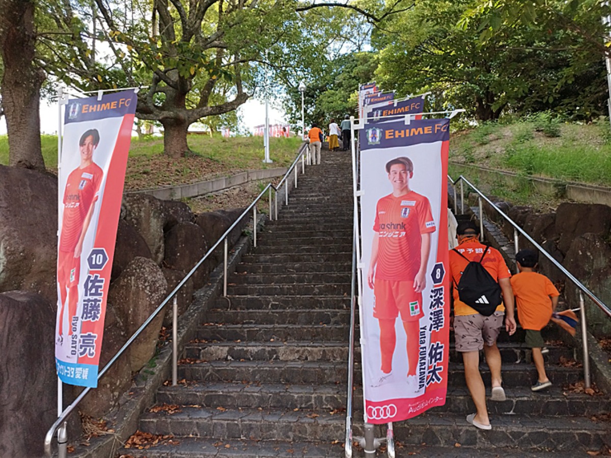 ニンジニアスタジアムを訪れる際の最初の関門?心臓破りの階段も選手達が応援してくれるからきっと大丈夫。