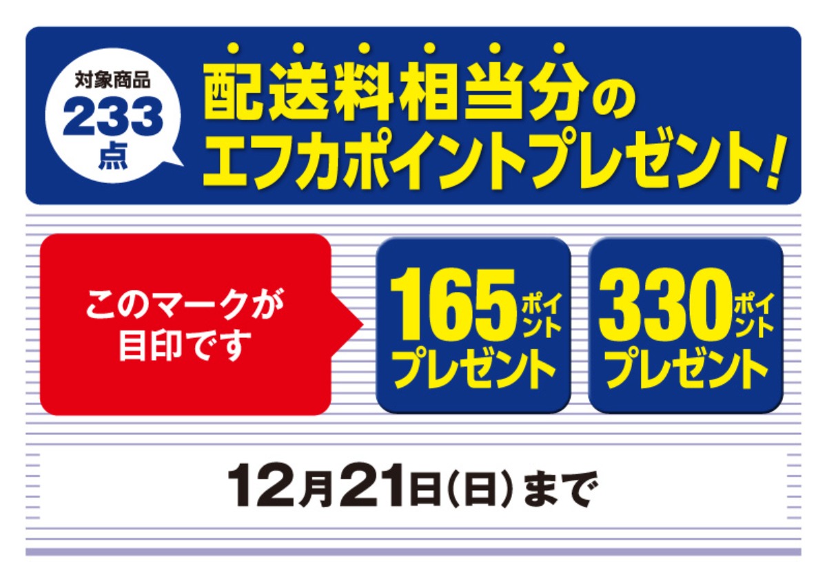 ※プラスポイント数は、エフカポイント○倍セールの場合でも変わりません。