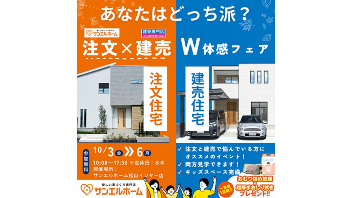 相談会|注文住宅 VS 建売で悩んでいる方へ!W体感フェア開催!|松山市北土居|サンエルホーム(幹建設)