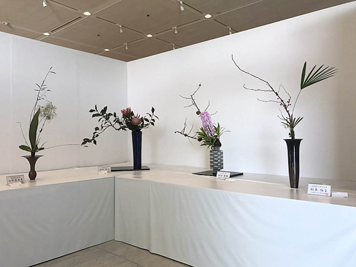 本展の最大の魅力は、愛媛県華道会と愛媛県いけばな芸術協会の協力のもと、数多くの流派が一堂に集うこと。