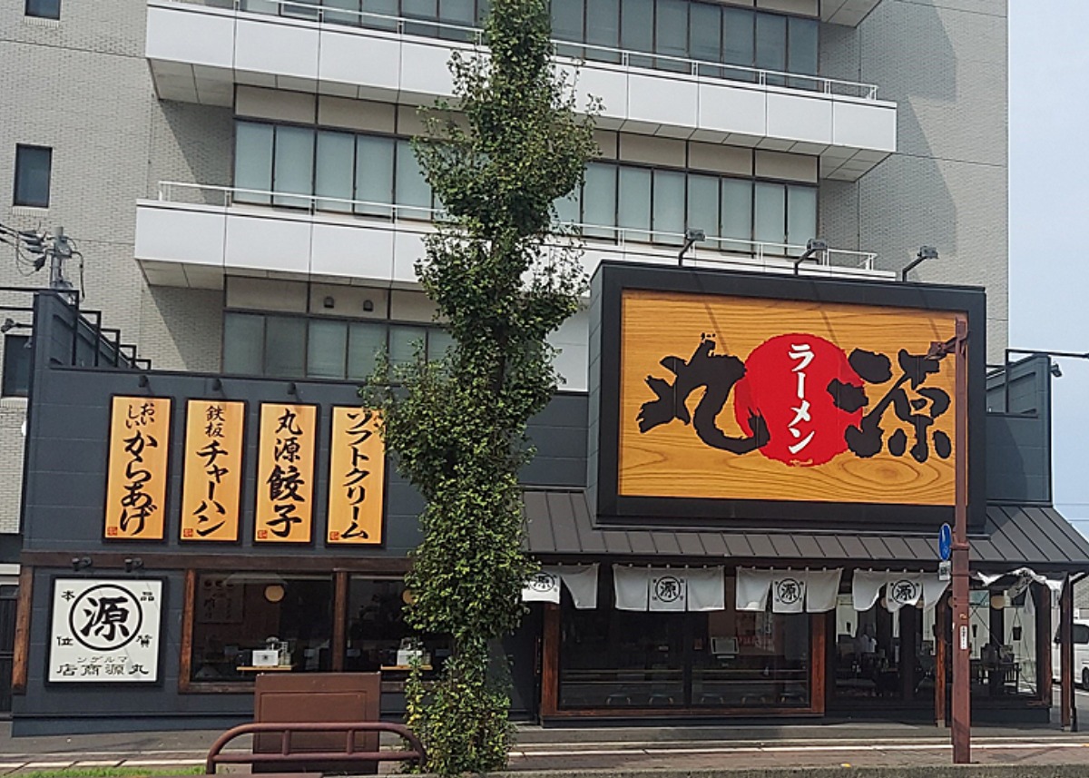「丸源ラーメン」と書かれた大きな看板が掲げられていて、初めてでもすぐに見つけられます。