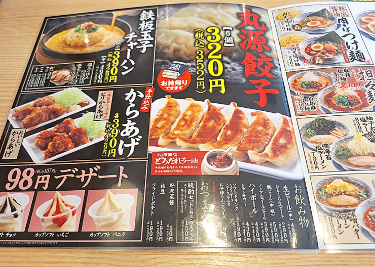 丸源ラーメン 新居浜店さんのメニューは、思わず迷ってしまうくらい豊富です。