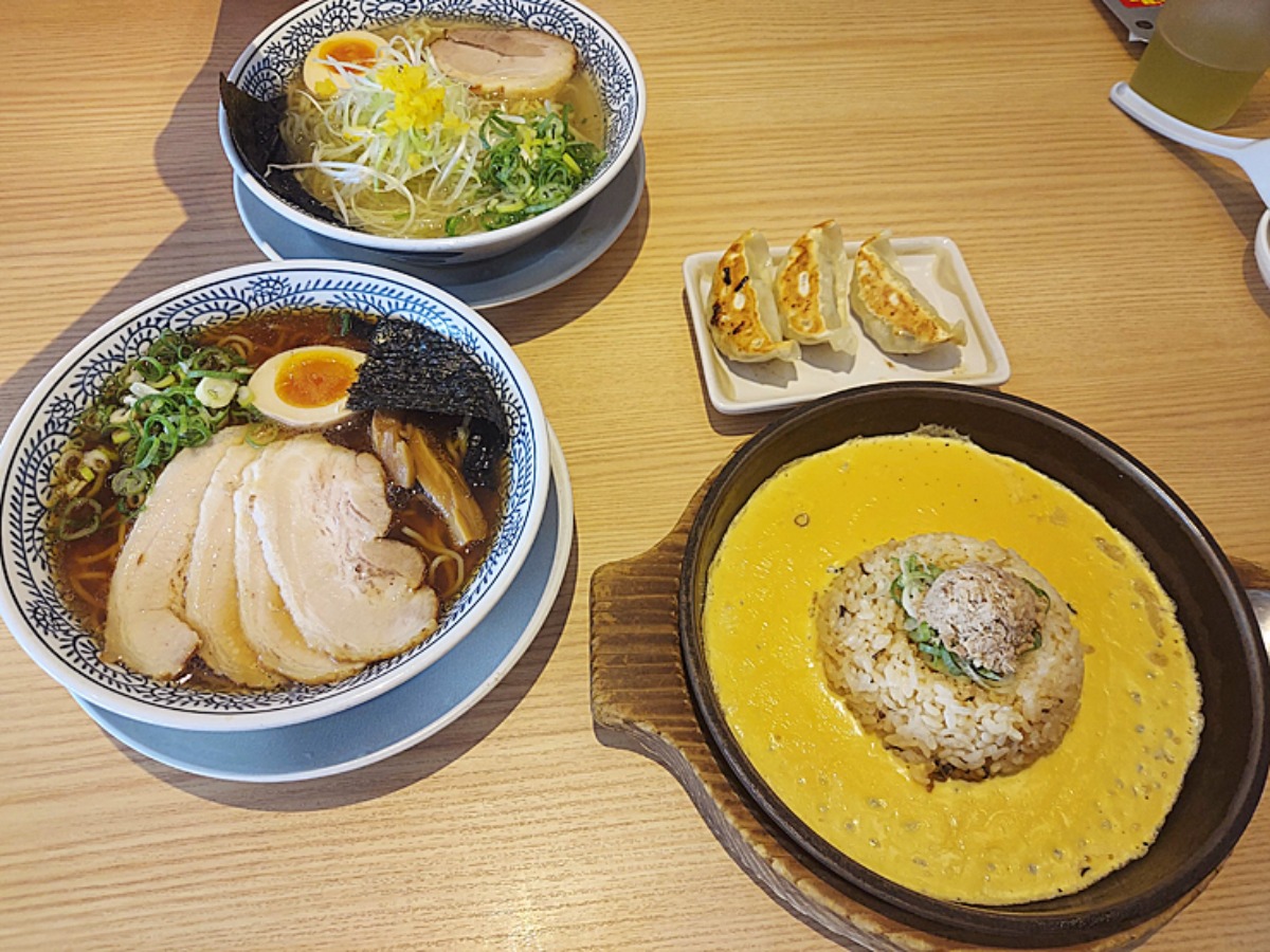 今回は、うさかかは単品で「柚子ネギ塩ラーメン」、うさととは「得セット」で「熟成醬油チャーシュー麵」と「チャーハン餃子セット」のセットメニューをセレクト。