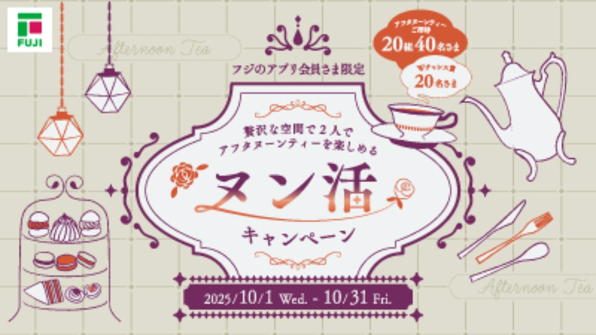 【フジ | 10/1(水)-10/31(金)】『フジのアプリ会員さま限定』ヌン活キャンペーン!贅沢な空間で2人でアフタヌーンティーを楽しもう♪