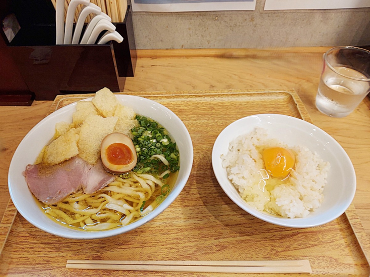 うさととは、「煮干麺(にぼしそば) 太麺」(850円)と「たまごかけごはん」(モーニングサービス価格 110円)をセレクト。