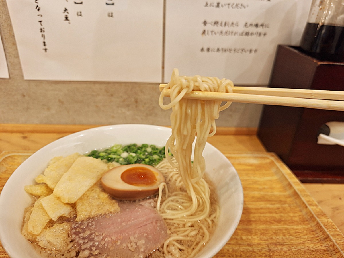 麺は細麺で、煮干しの味がしっかりと感じられるスープです。