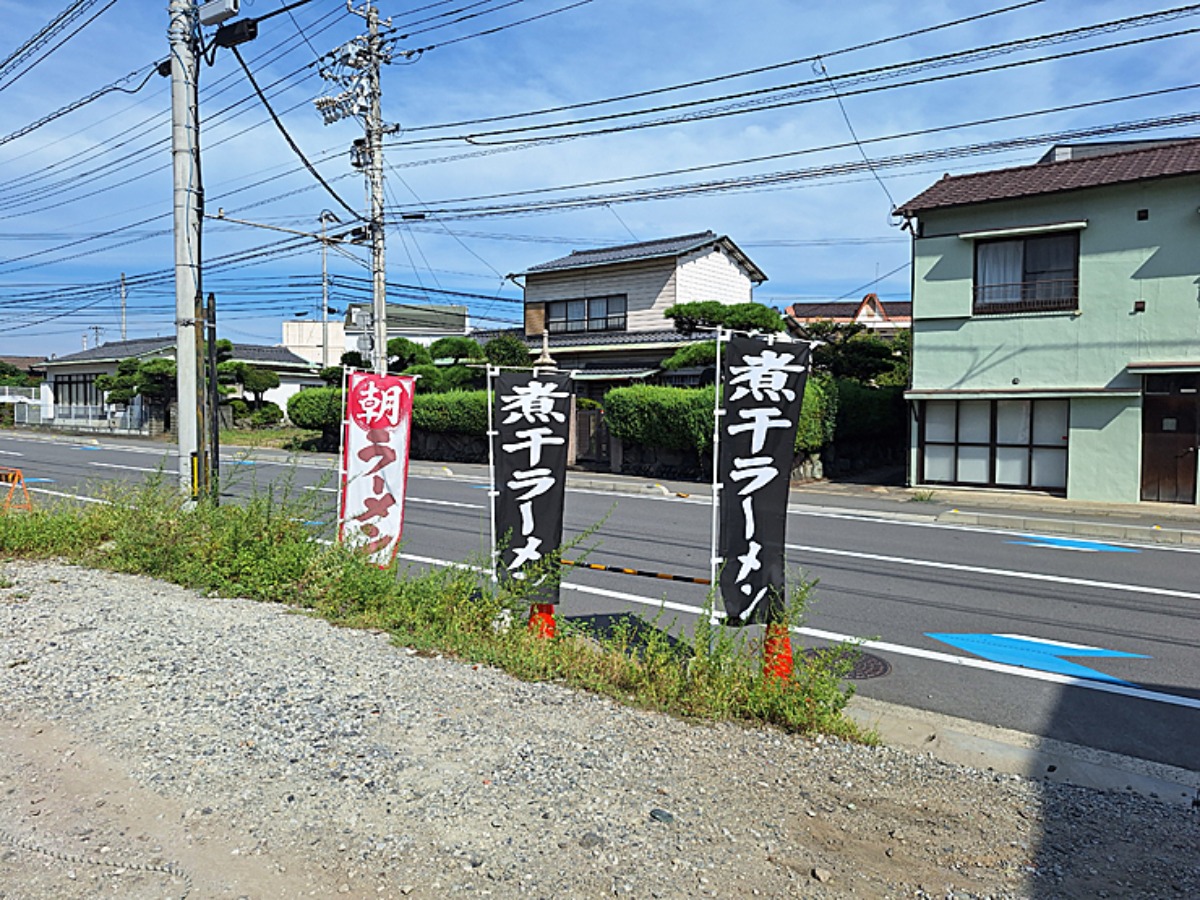 通り沿いには「煮干ラーメン」ののぼりが出ています。