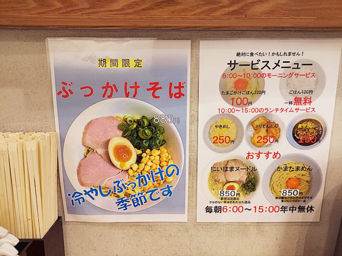 その他にも「冷やしラーメン」や「冷やしぶっかけ」など期間限定メニューも提供されています。