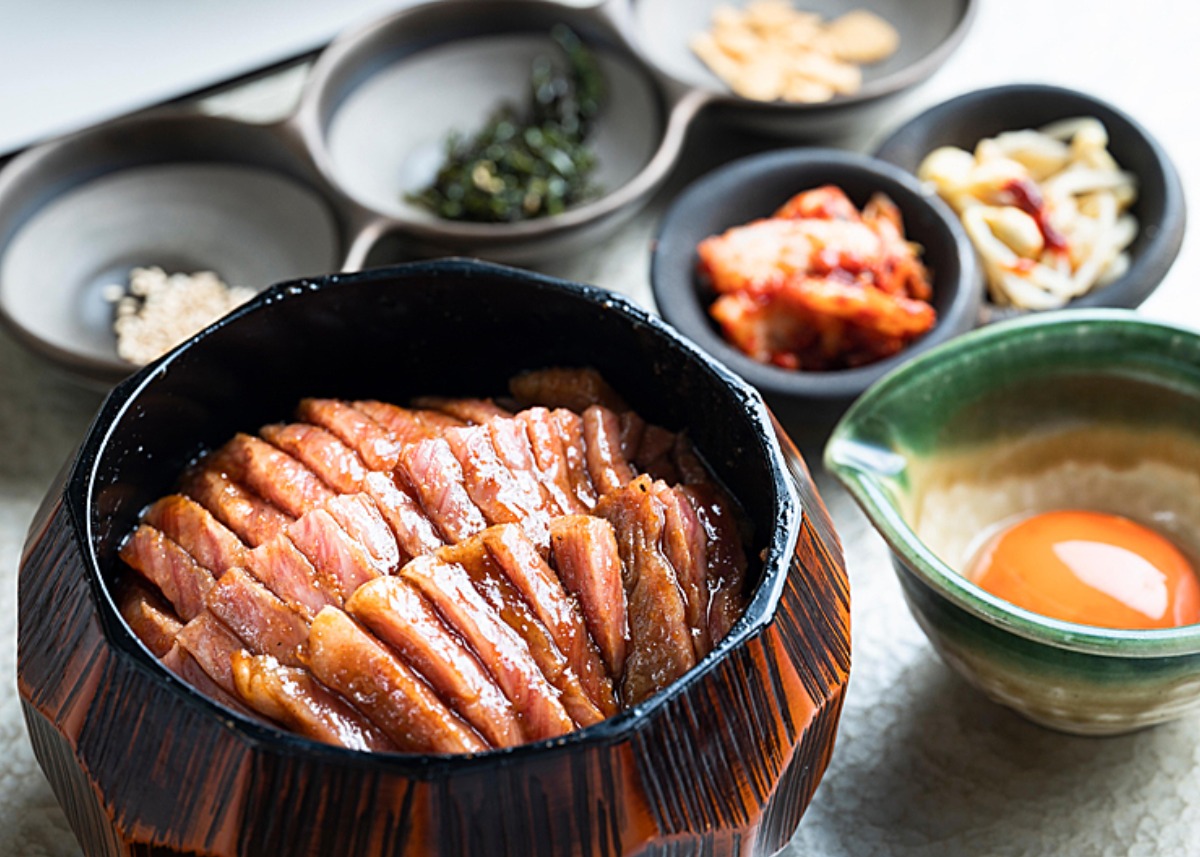 まずそのままで肉の旨みを堪能し、次は薬味をのせてカスタマイズ。さらにダシをかけてお茶漬け風でも楽しめる。複数用意された薬味を自由に組み合わせ、新たな味わいを探すのもおすすめ。自家製キムチが付くため、クッパ風のアレンジも◎