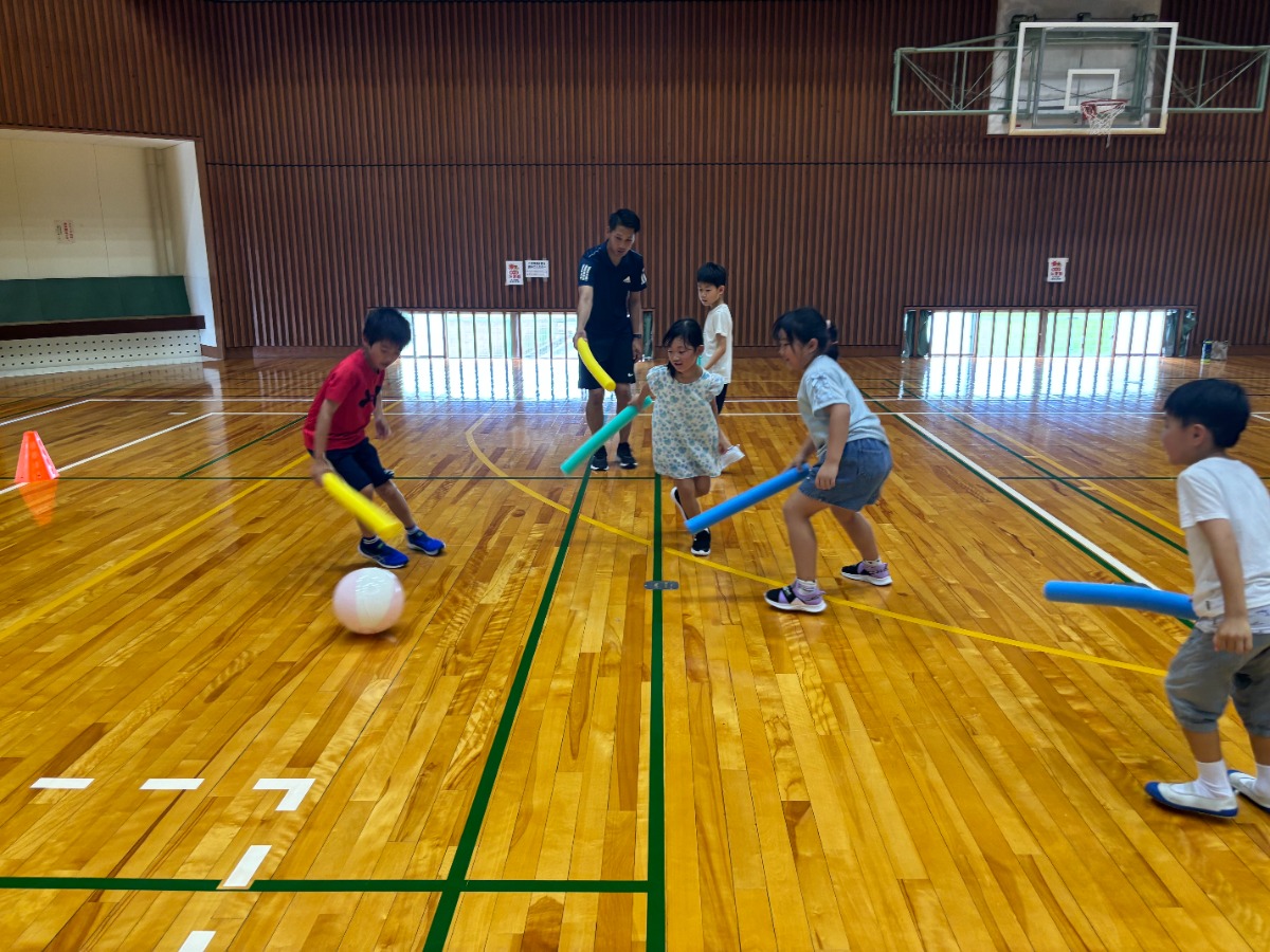 風船バレーで空間認知能力を鍛えたり、しっぽ取りゲームで瞬発力や状況判断力を養ったり。