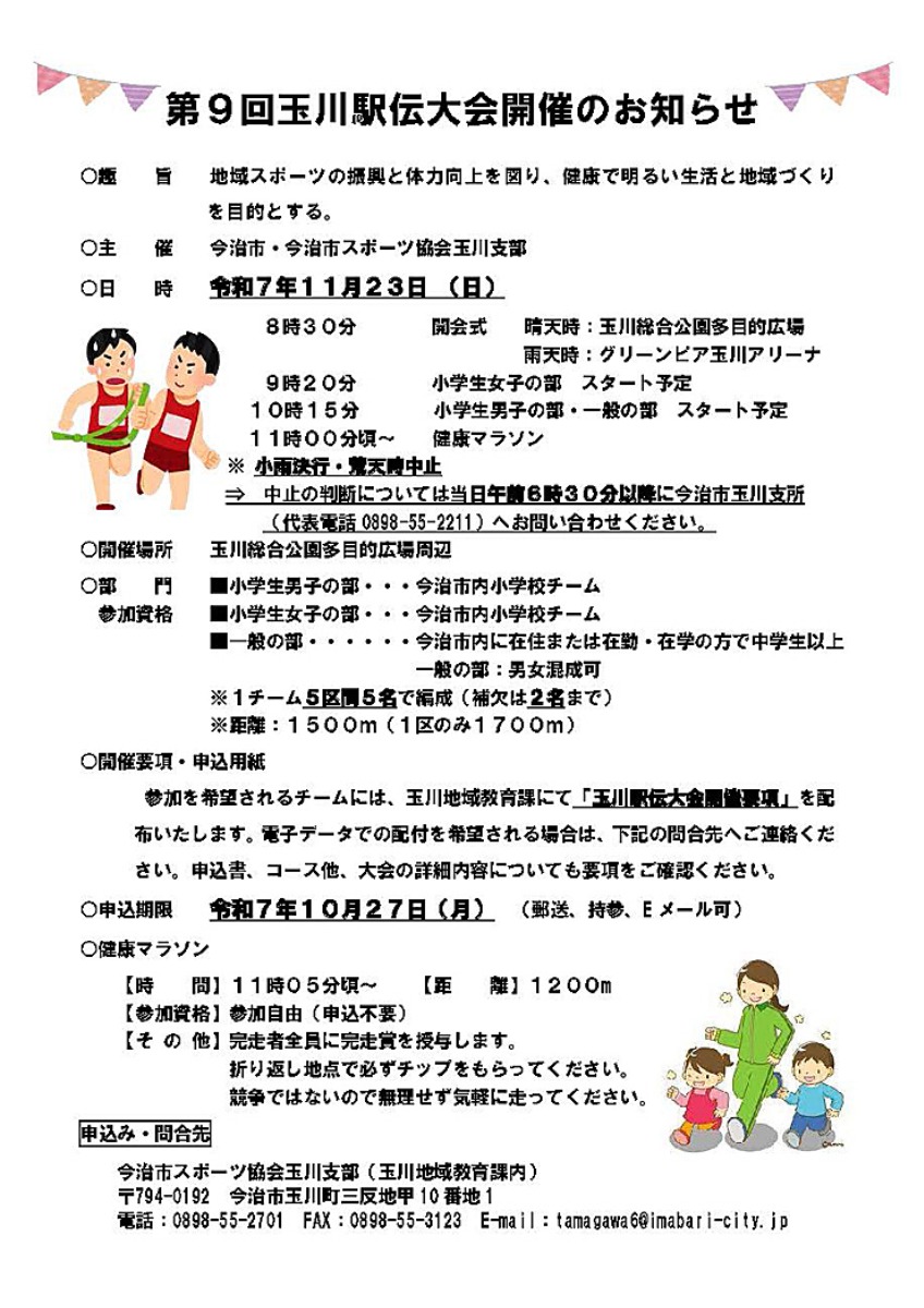 秋の澄んだ空気の中、今治市で「第9回玉川駅伝大会」を今年も開催!
