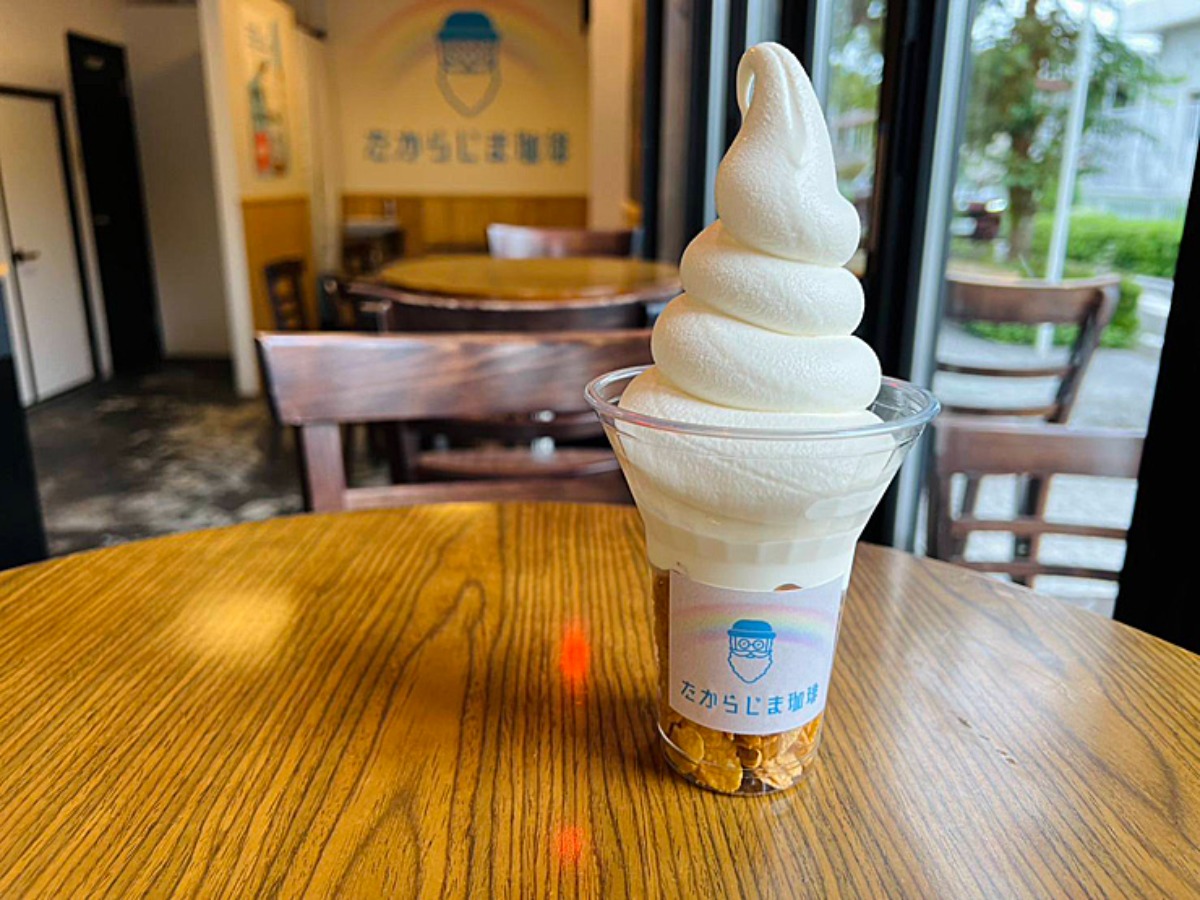 北海道産のミルクをたっぷり使った「たからじまソフト」は、口に入れた瞬間、その濃厚なコクと滑らかさに驚かされる一品。