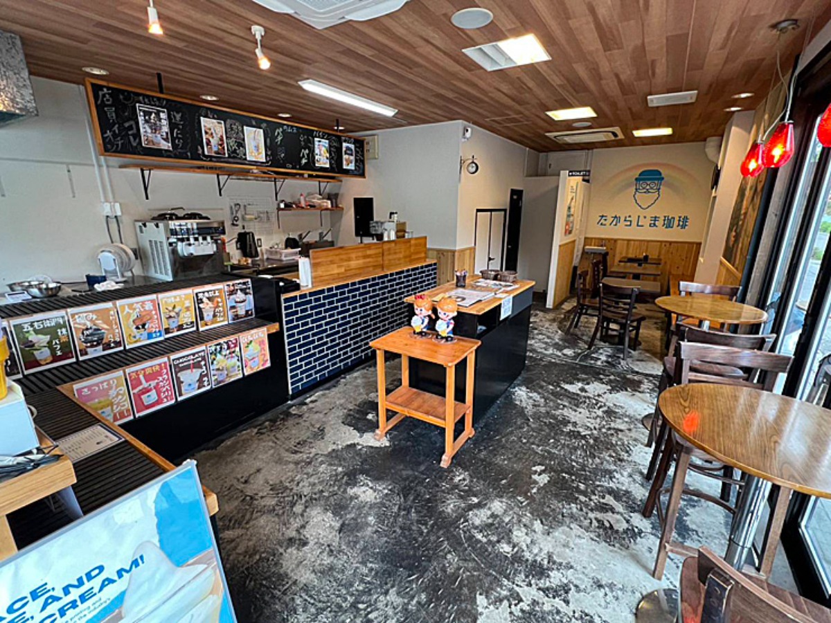 「たからじま珈琲」では、香り高いコーヒーやまろやかなカフェオレも楽しめます。