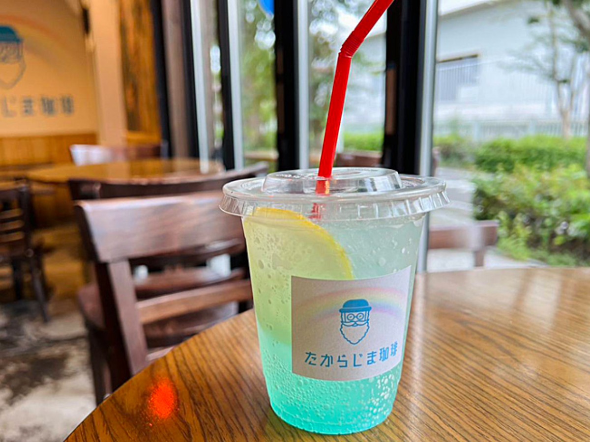 北海道ソフトやカップパフェ、季節の果肉ドリンクなど、選ぶ楽しさがぎゅっと詰まった「たからじま珈琲」。