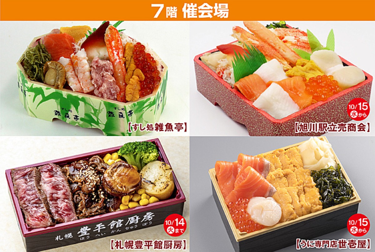 会場は7階催会場・キャッスルルーム、8階スカイドーム、そして地階西エレベーター前の特設イートインスペースと、館内各所で楽しめます。