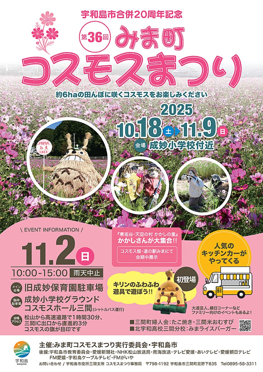 宇和島市三間町で毎年開催される「みま町コスモスまつり」は、今年で第36回を迎えます。