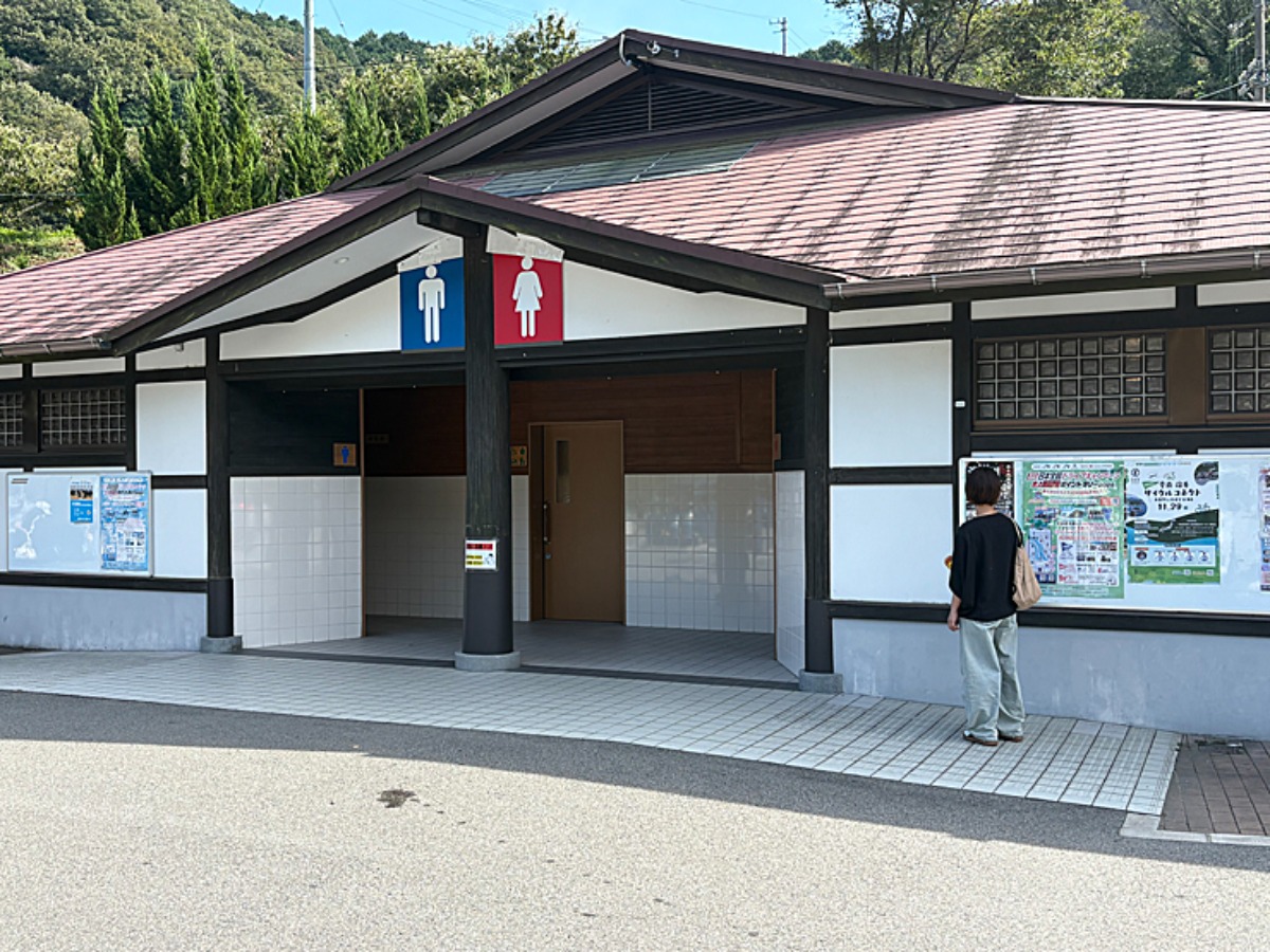お手洗いが広々として使い勝手がいいのも、この場所が人気のポイントのひとつかも。車もひっきりなしに出入りしていました。