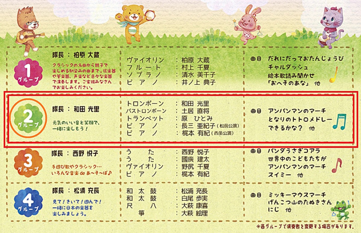 演奏はピアノと管楽器を中心に、手遊びや身体を動かして一緒に楽しむコーナーも盛り込まれています。