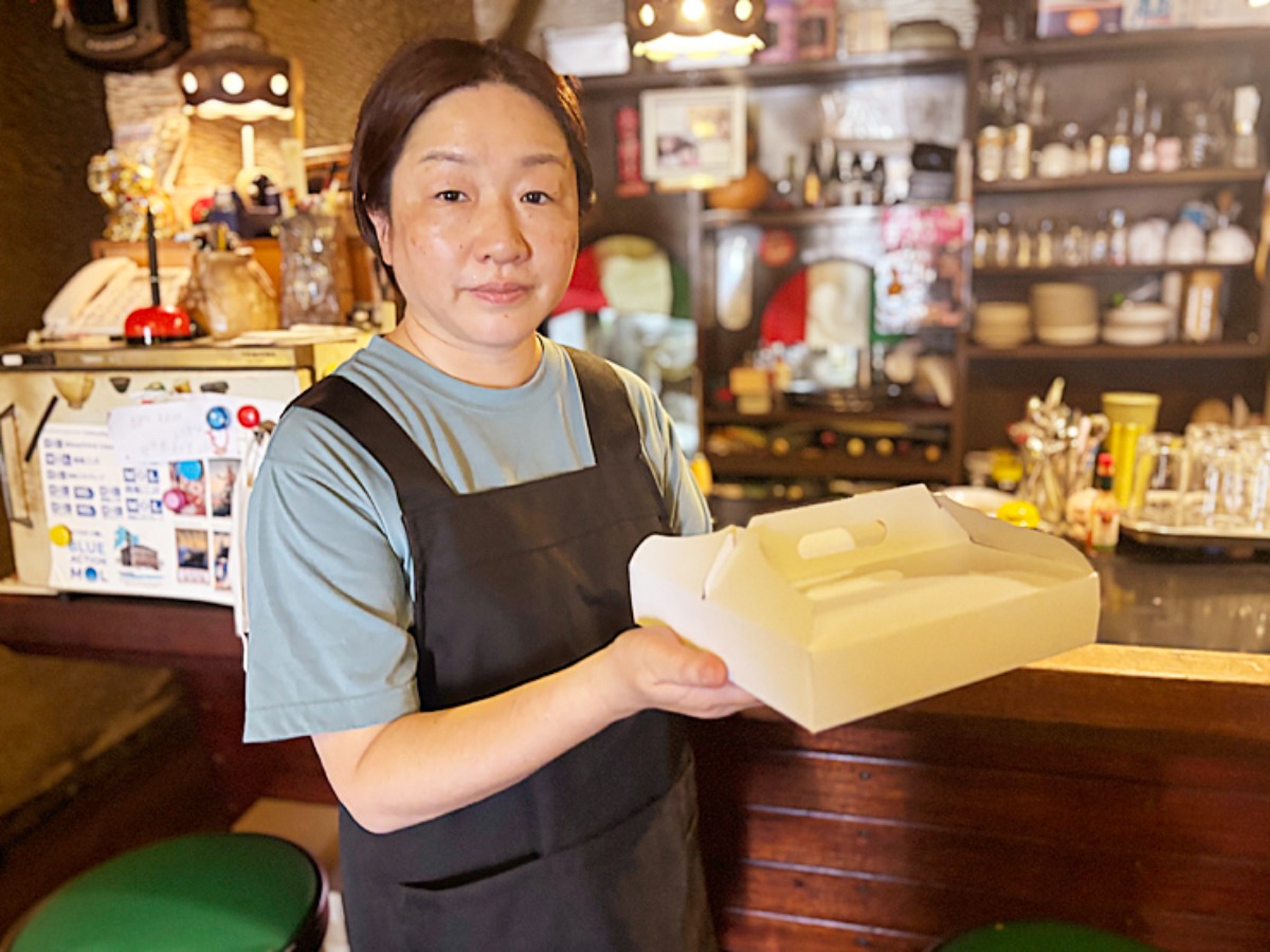 ピザ、ピラフ、グラタンは専用の箱に入れてテイクアウトも可能。
