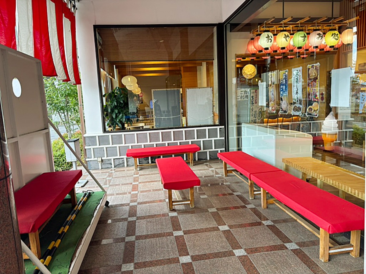 お店の外で食べられるスペースがありました。購入後に、のんびりお外で食べるのも良いですね。風がよく通っていましたよ。