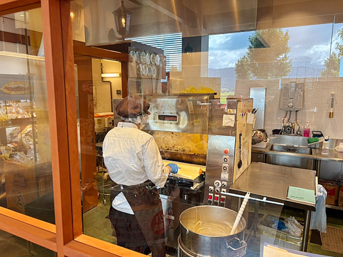 そのほか、どら焼き工房や目の前で焼き上がるバームクーヘン工房でもできあがる工程が楽しめますよ♪