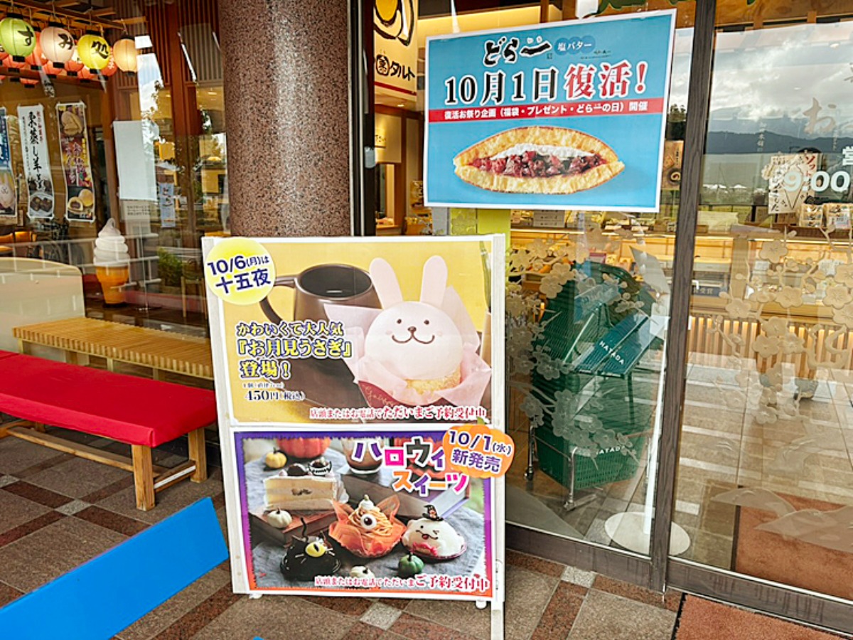10月は十五夜とハロウィンの商品に注目が集まります。どら一の復活看板も!