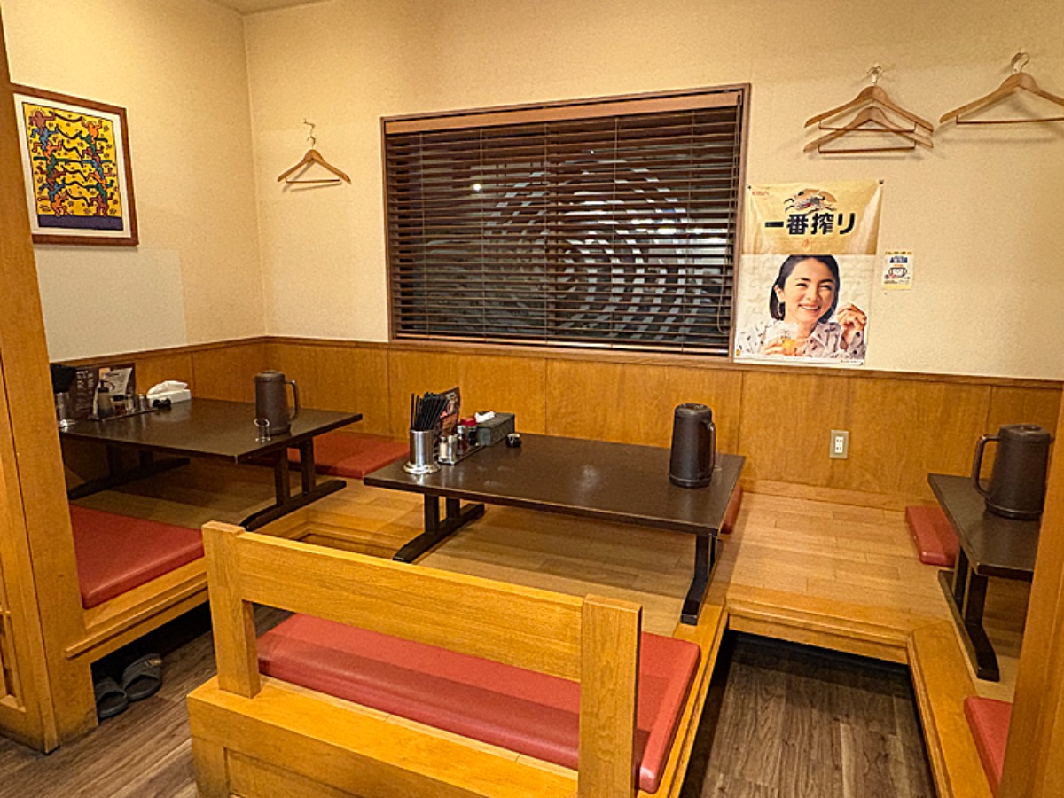テーブル席やカウンター、座敷席も有、多彩なシーンで使える大衆的ラーメン屋さん
