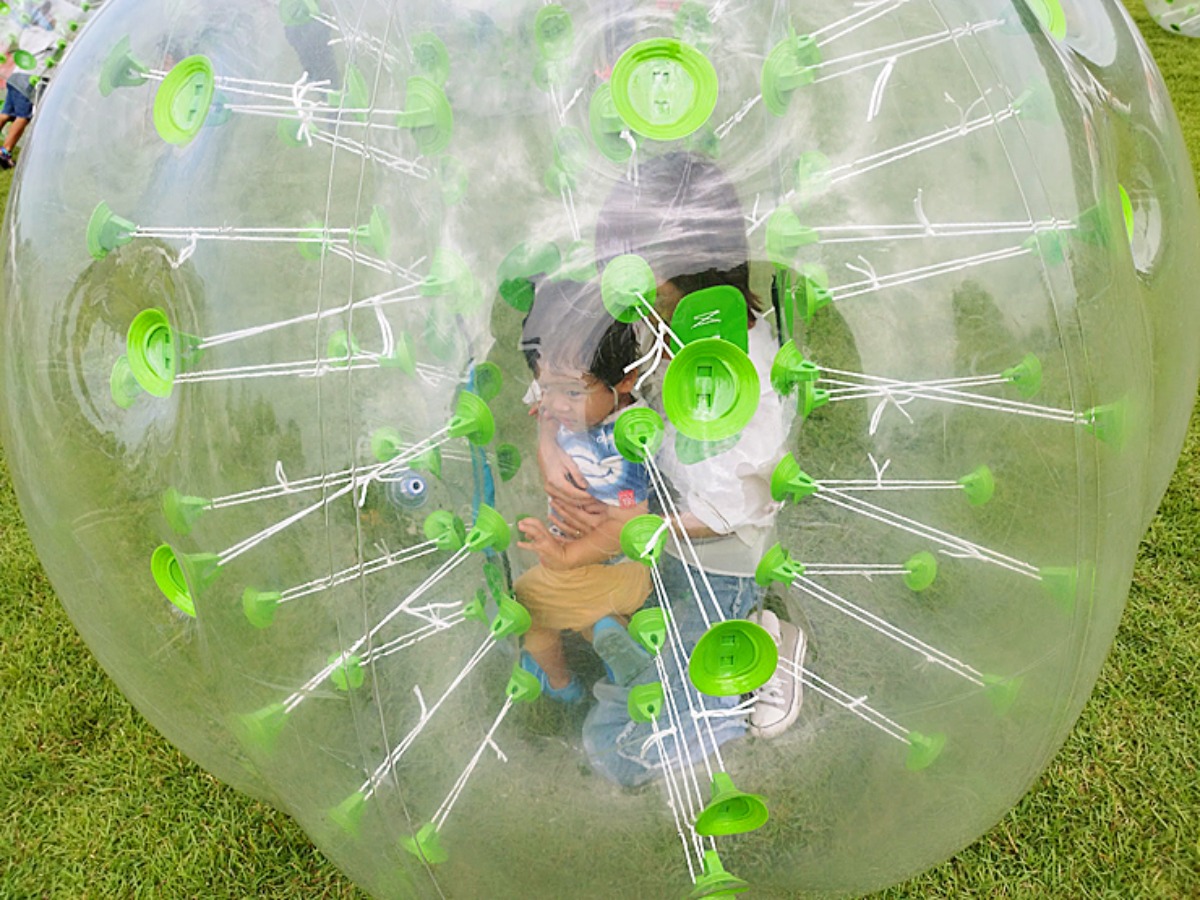 バブルボールでゴロゴロ転がって遊びました!2歳児にはちょっと怖かったみたいです。