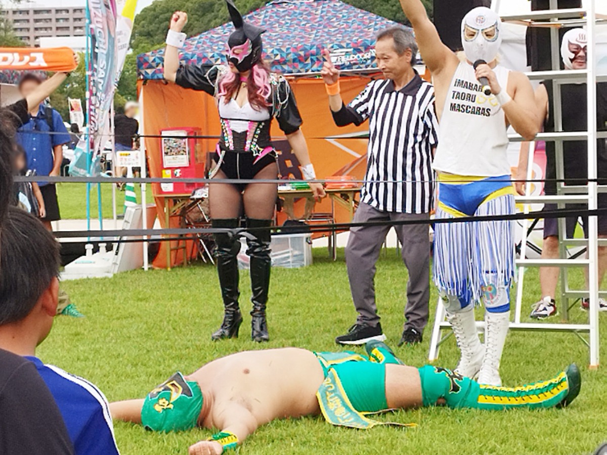 そして個人的本日のメインイベント、ご当地プロレス団体愛媛プロレスによるプロレスパフォーマンスも登場。