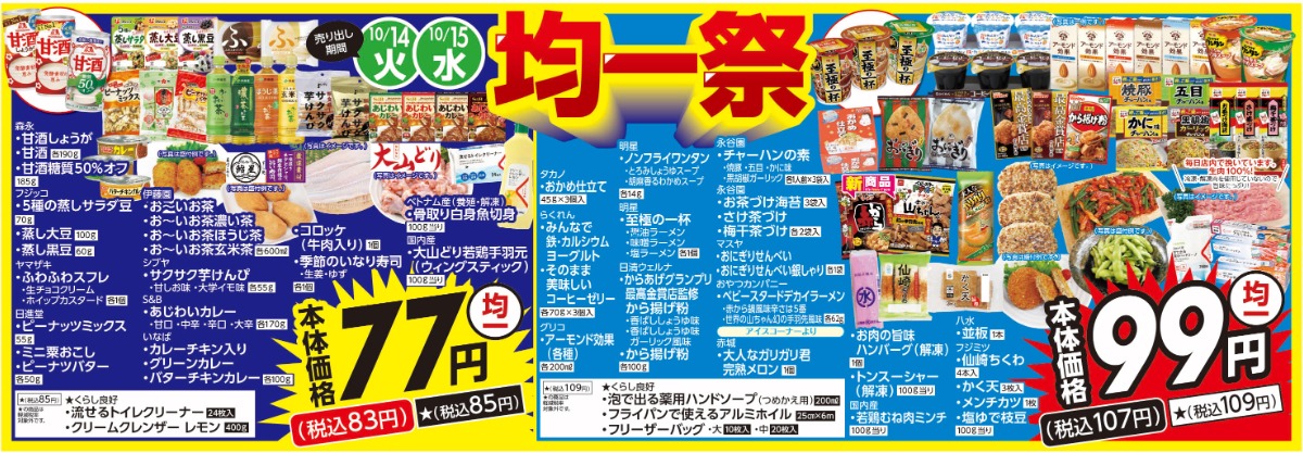 10/14(火)・15(水)均一祭