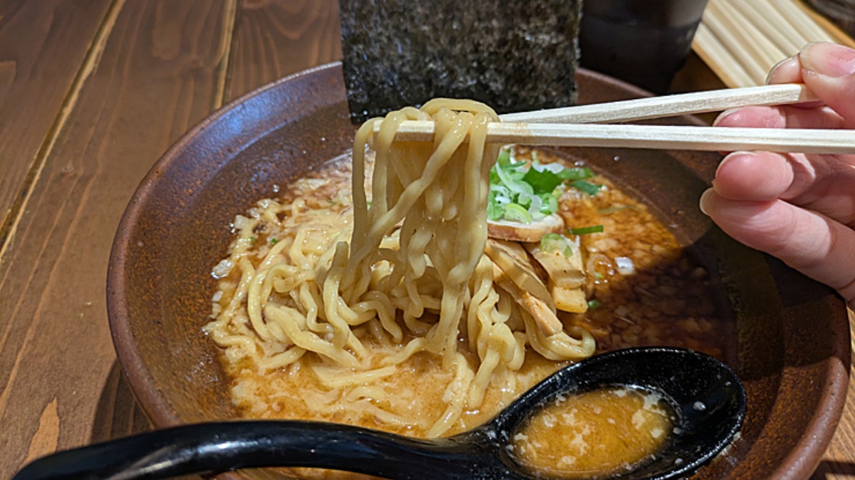 麺は中太でスープとよく絡み、つるっとした食感が心地よく箸が止まりません。
