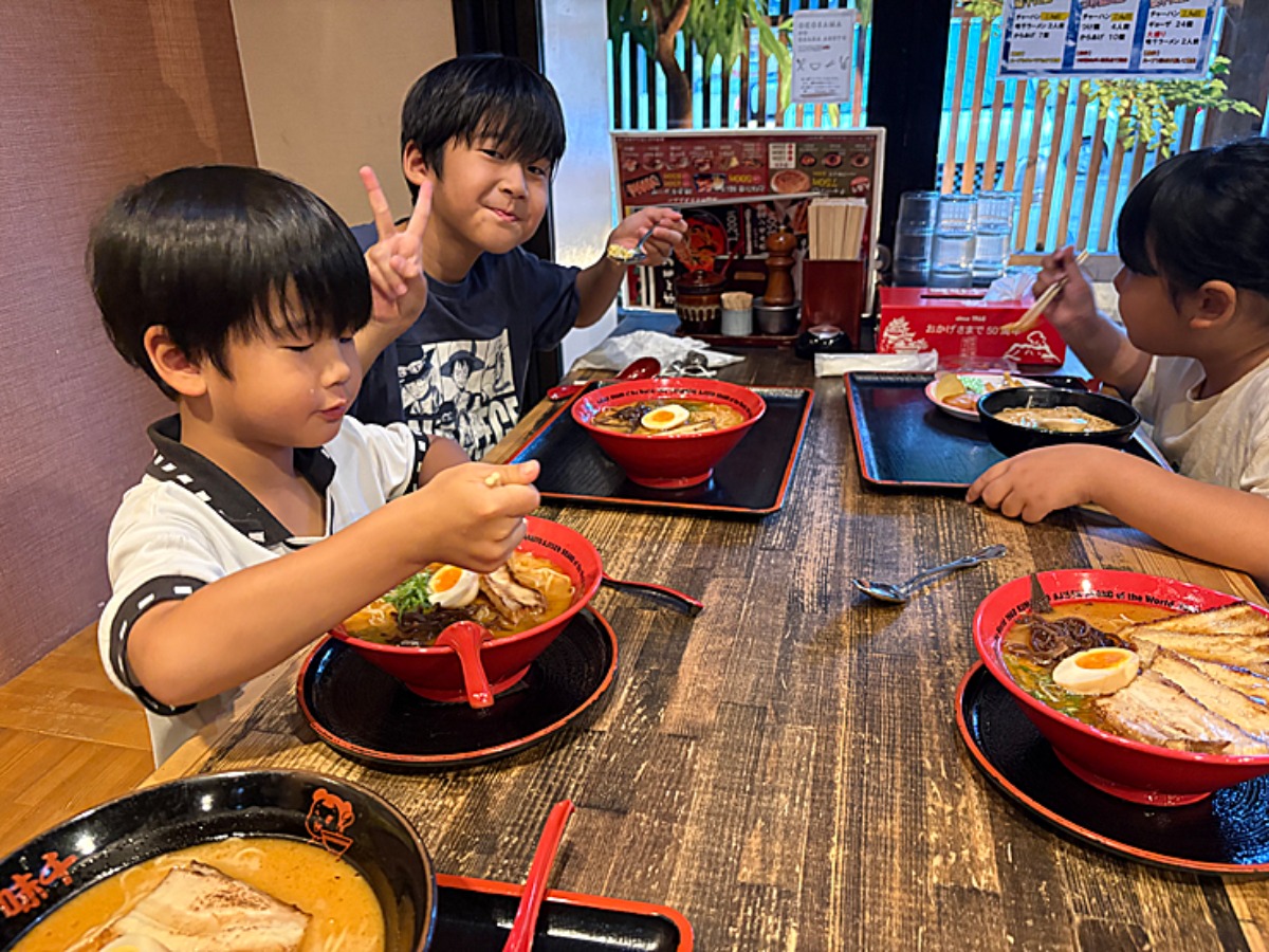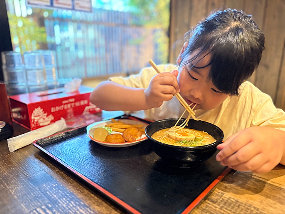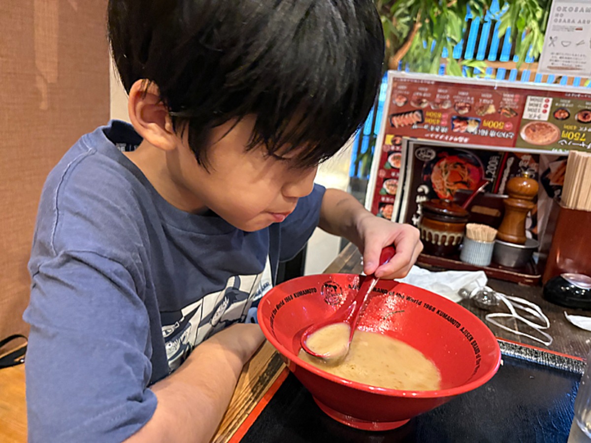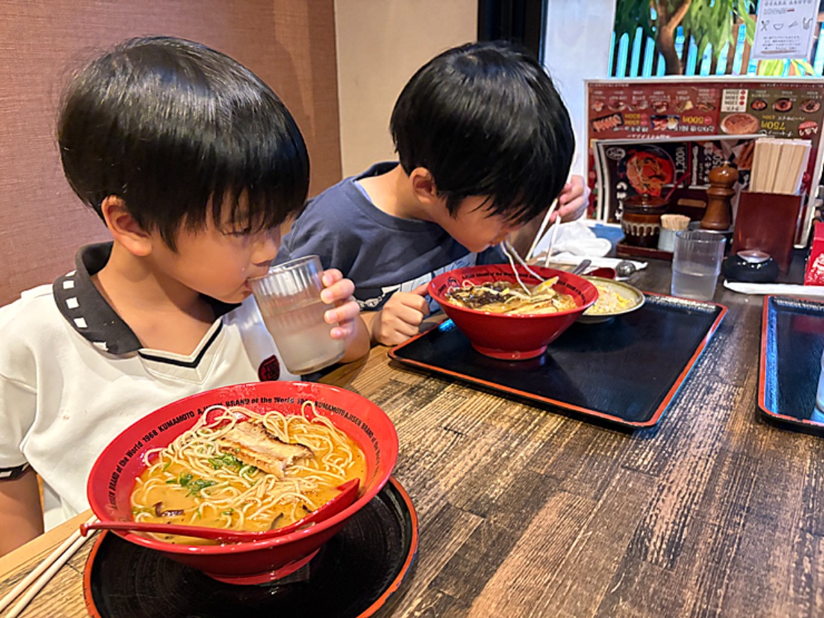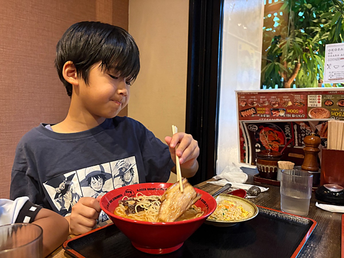味千ラーメンは濃厚なのに食べやすく、チャーハンはパラッとしていて香ばしくて大人も子どもも大満足。