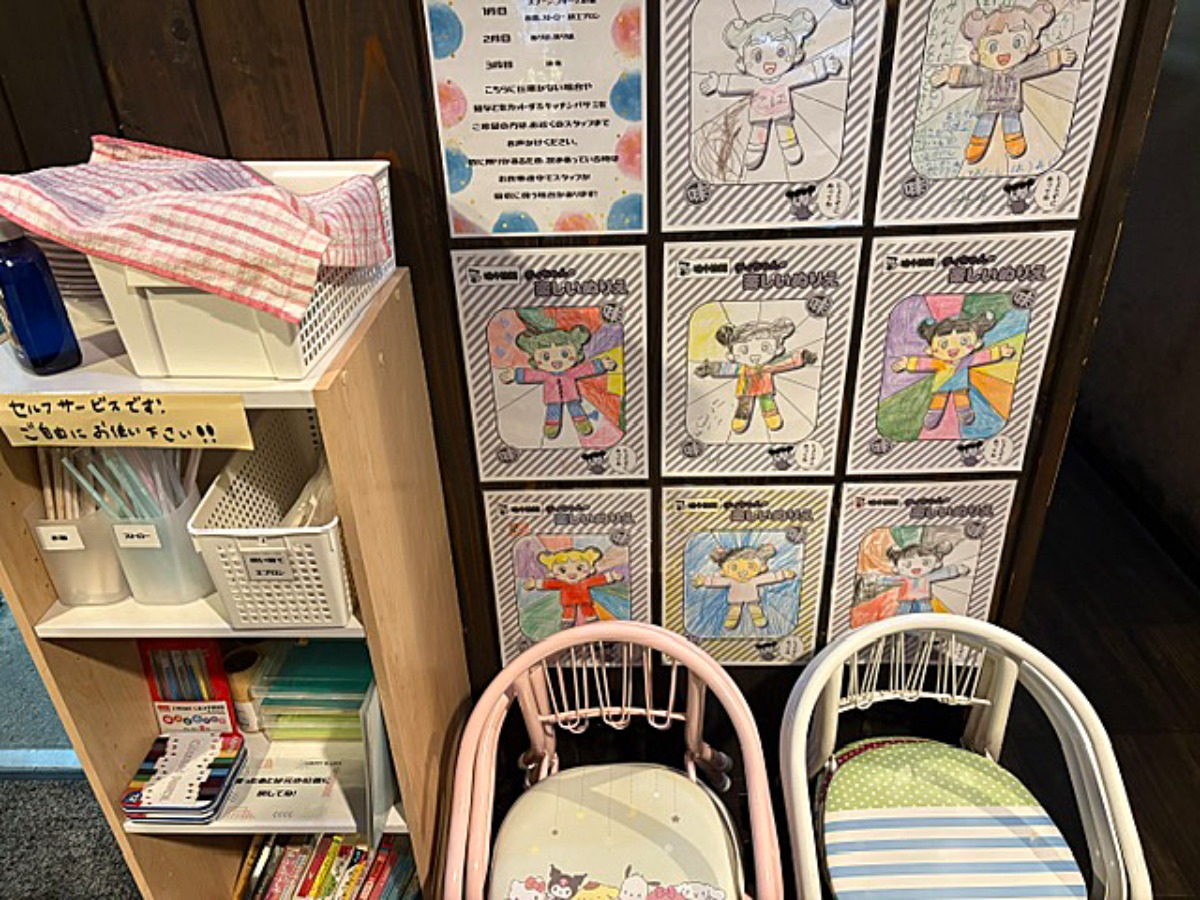 子ども用食器や塗り絵などの待ち時間対策グッズも!