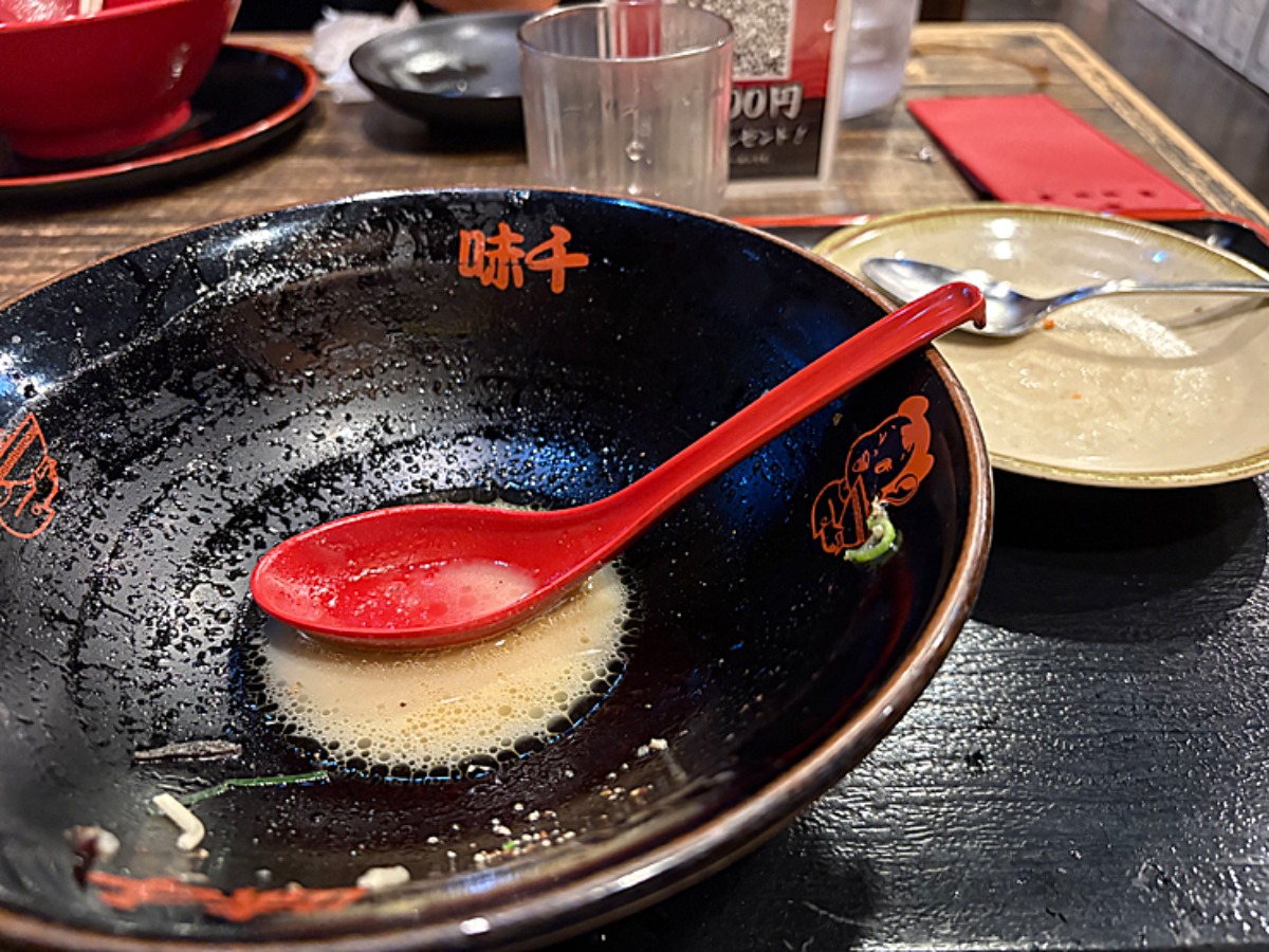 スープもきれいに飲み干し、大人サイズの味千拉麵を完食です。