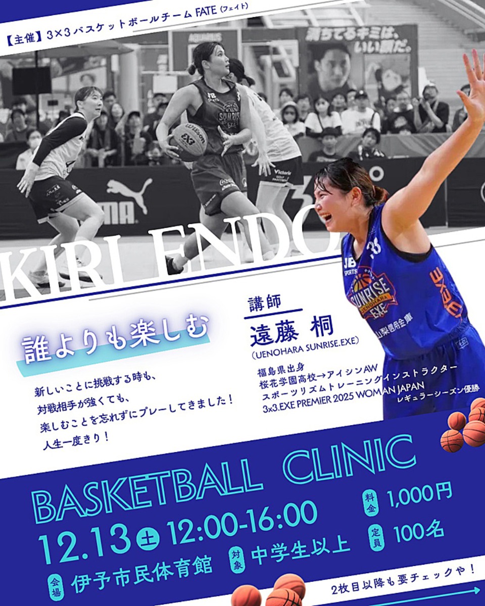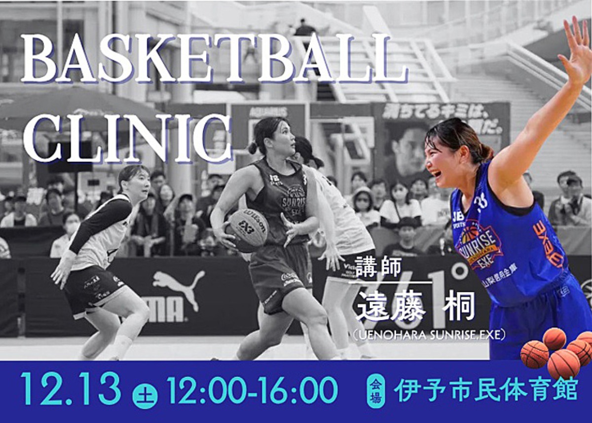 2025年11月24日(月)申込締切 全国レベルのバスケクリニックを伊予市民体育館で受けられるチャンス