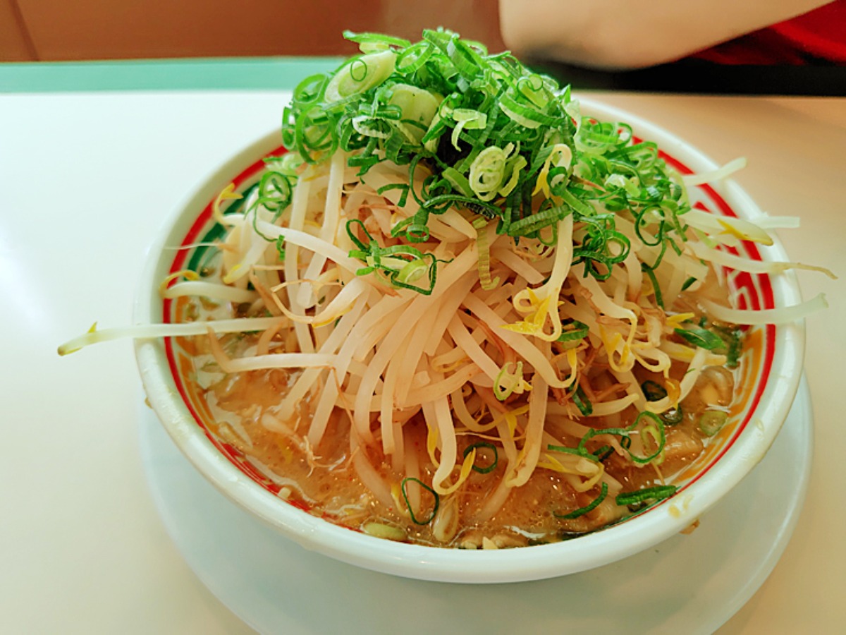 山盛りのもやしトッピングに思わず笑みが。心も元気になるラーメン。