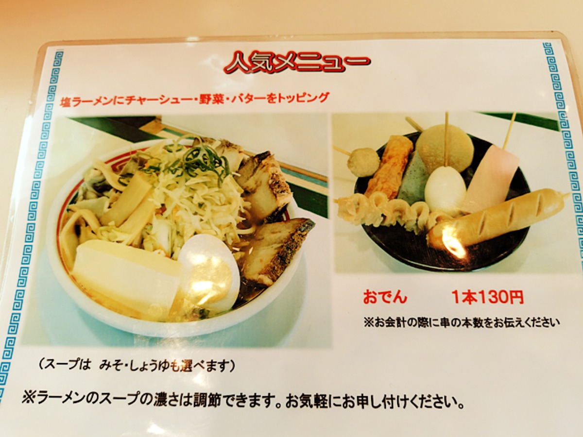 人気は「塩にチャーシュー、野菜、バター」合計1,100円。