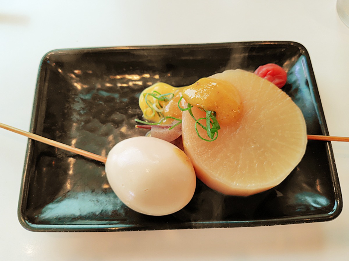 厚さ3㎝くらいの厚切り大根もしっかり味が染みていました。辛子味噌は2種類。