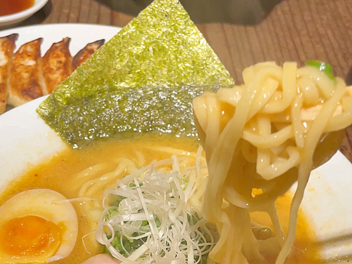 こちらはストレート麺を使用していて、濃厚なスープにしっかりと絡みます。