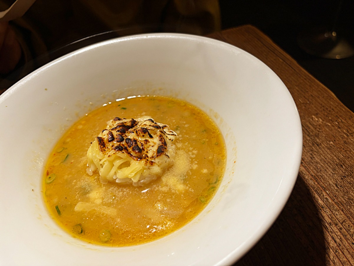 今回はこってりのスープに「チーズの炙りご飯」を入れてもらいました。
