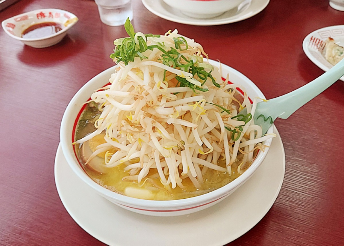 上の写真では、しょうゆバターラーメンにもやしをトッピングしました。