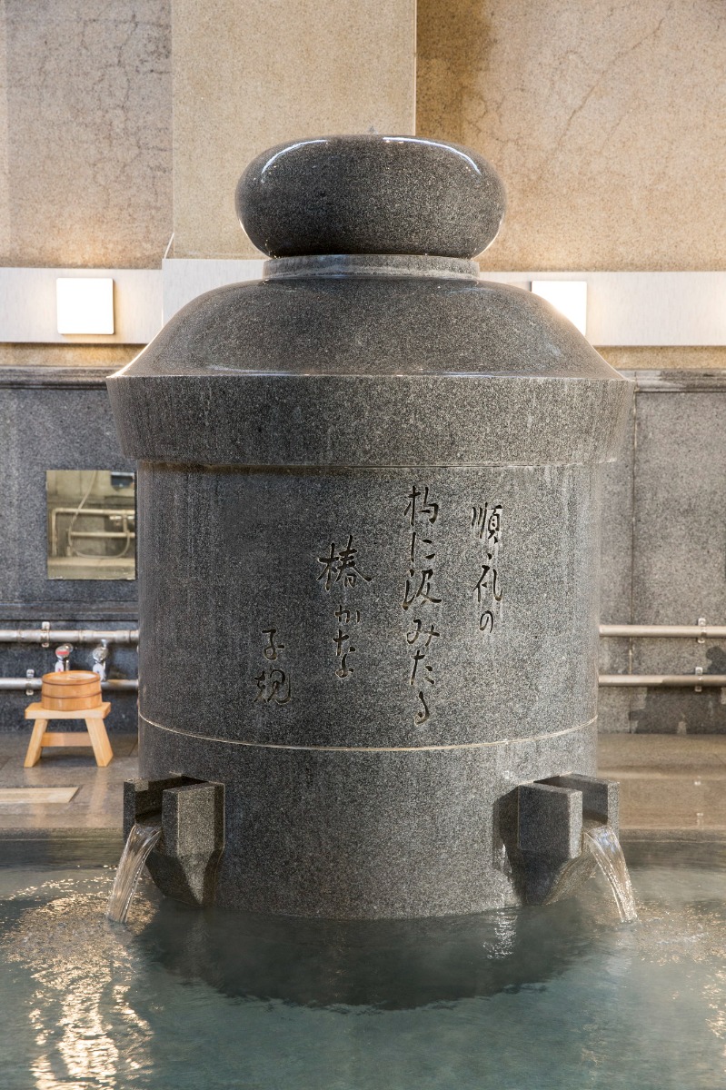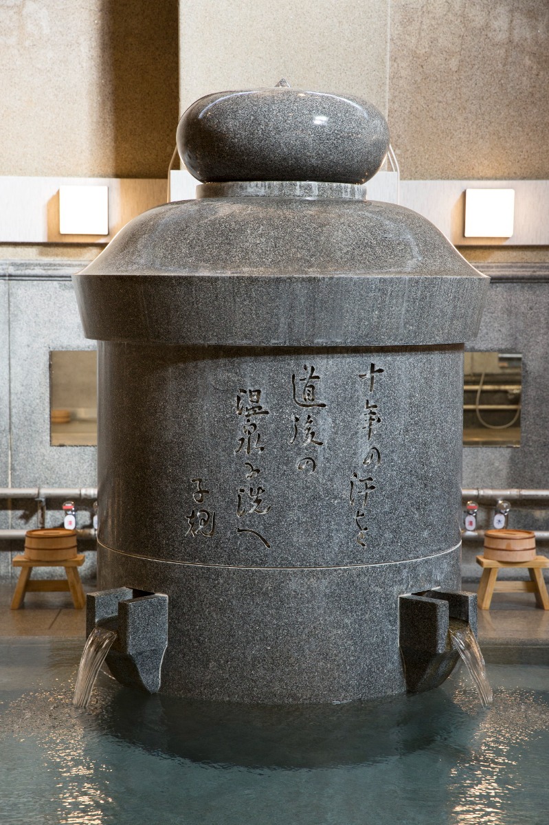 道後温泉特有の湯釜も置かれており、温泉は、道後温泉本館と同じく無加温・無加水の「源泉かけ流し」の湯。道後温泉の泉質は、美肌効果が高いことで知られる「アルカリ性単純温泉(低張性アルカリ性高温泉)」なので、美容に関心のある方たちにもうれしい温泉です。