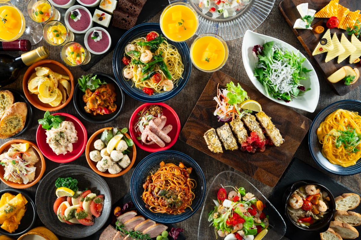 プレミアムプランは、「牛ロースのタリアータ」や「海老と洋葱のパスタ 雲丹風味」「いも豚ロースと各種茸のデュクセル クリーム仕立て」など少し贅沢なメニューも食べ放題に!