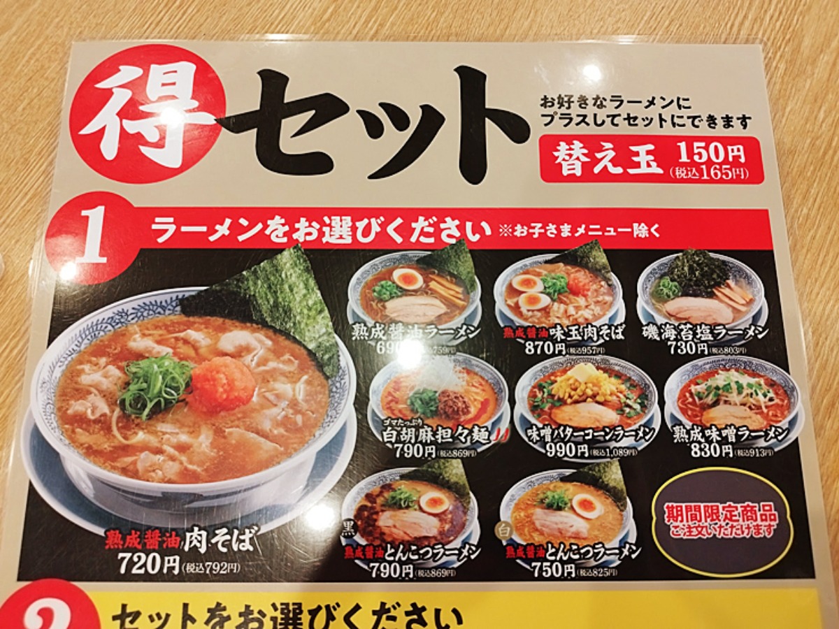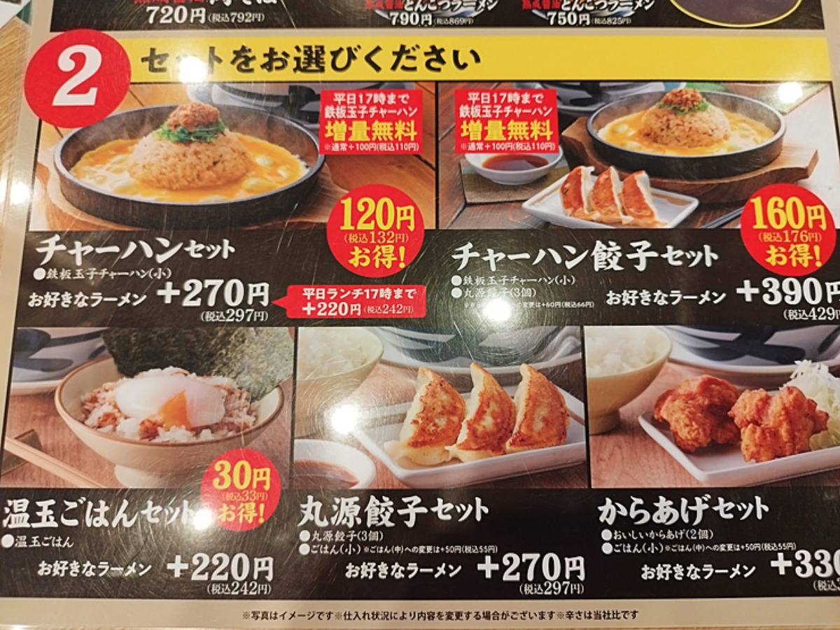 人気の丸得セット。好きなラーメンをまず選びましょう。
