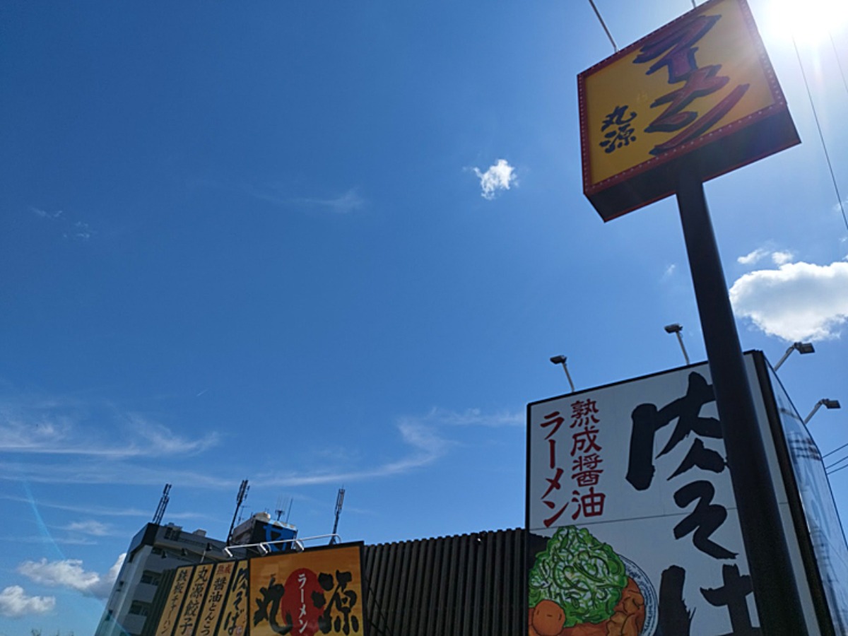 高々とそびえ立つ黄色地に赤文字の看板でお馴染みの丸源ラーメン。
