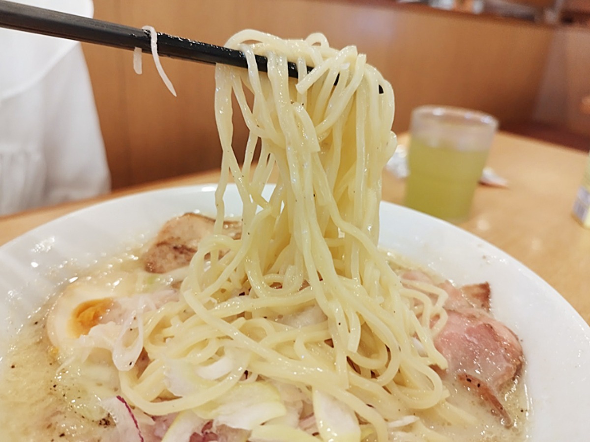 麺はさっぱり細麺で、女性でも抵抗なくするりといけてしまうほどよさ。