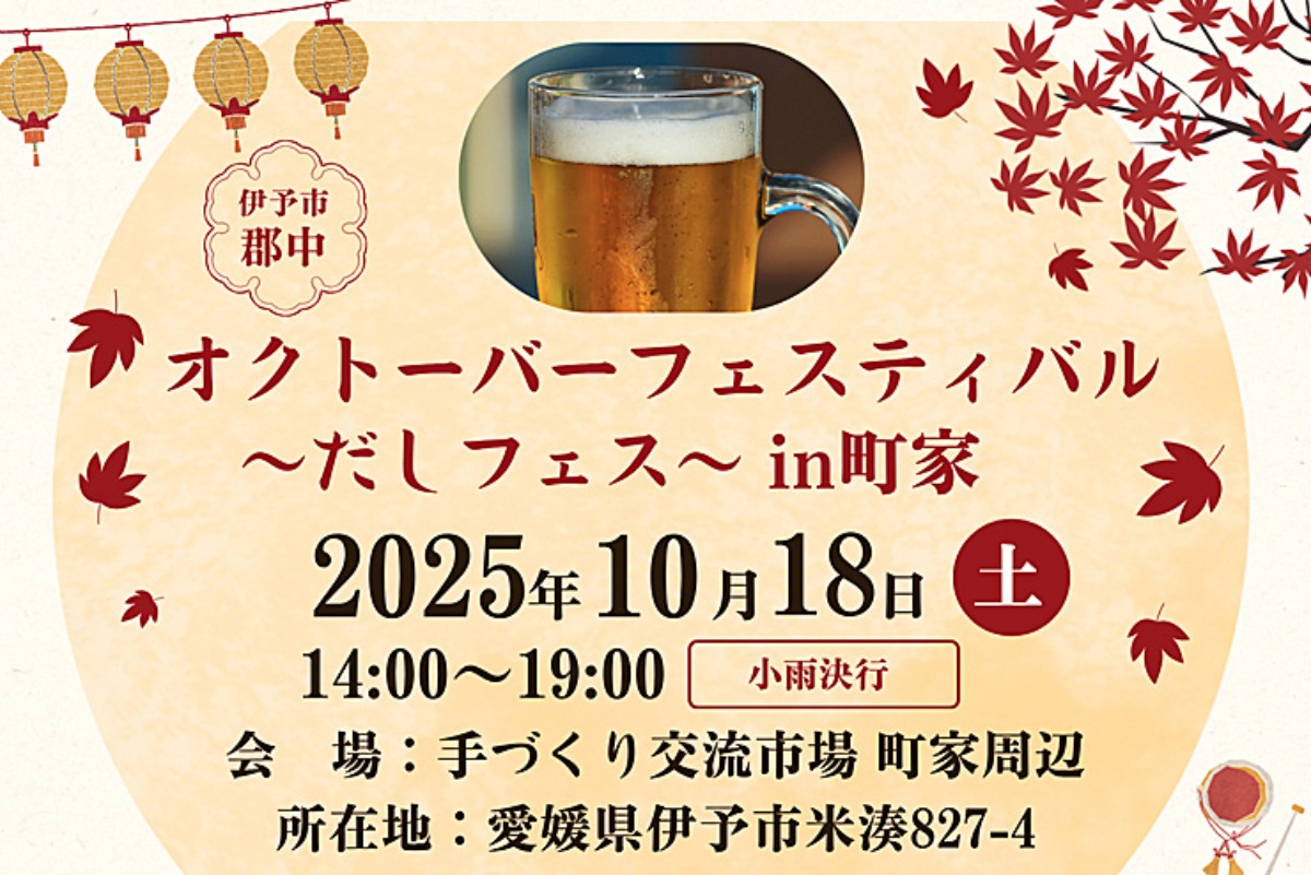 伊予市で初めて開催される「オクトーバーフェスティバル〜だしフェス〜in町家」は、秋の訪れとともに旬の味わいと賑わいを体感できるイベント!