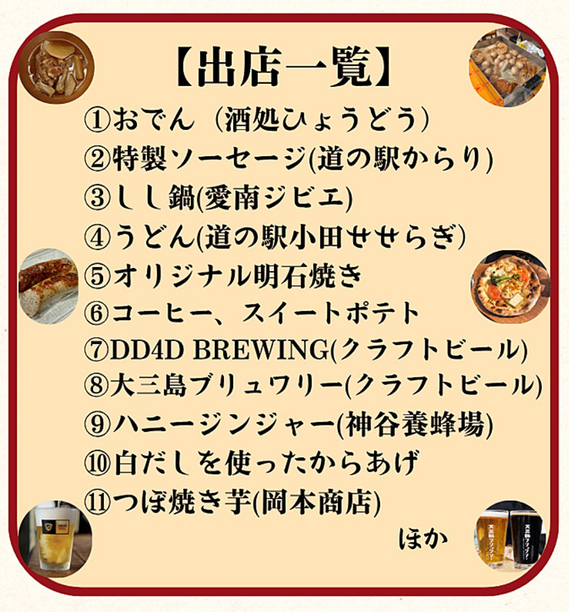 白だしを活かした唐揚げやオリジナル明石焼き、旨みあふれるおでんやしし鍋など、この日限りの美味がずらりと並びます♪