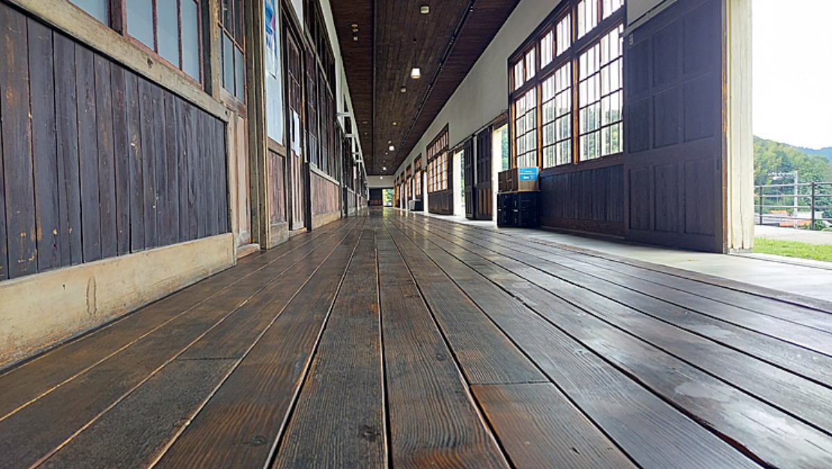宇和米博物館の名物といえば、日本一の長さを誇る109メートルの木造廊下。